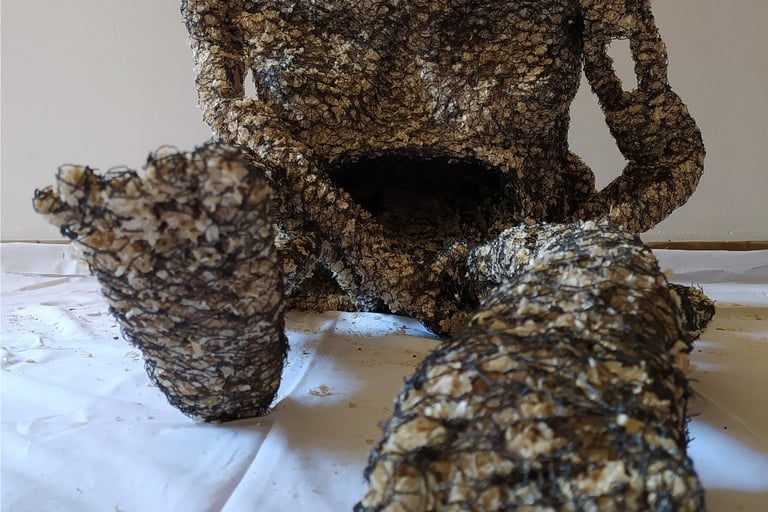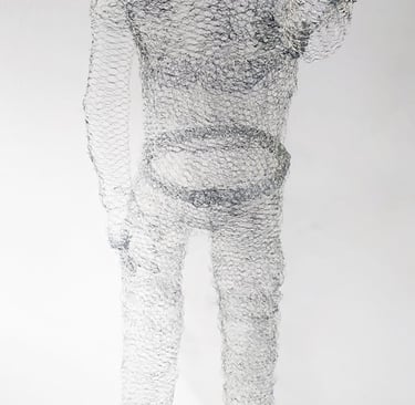 Materiale- ferro, rete metallica zincata, sughero, corda e plastica.